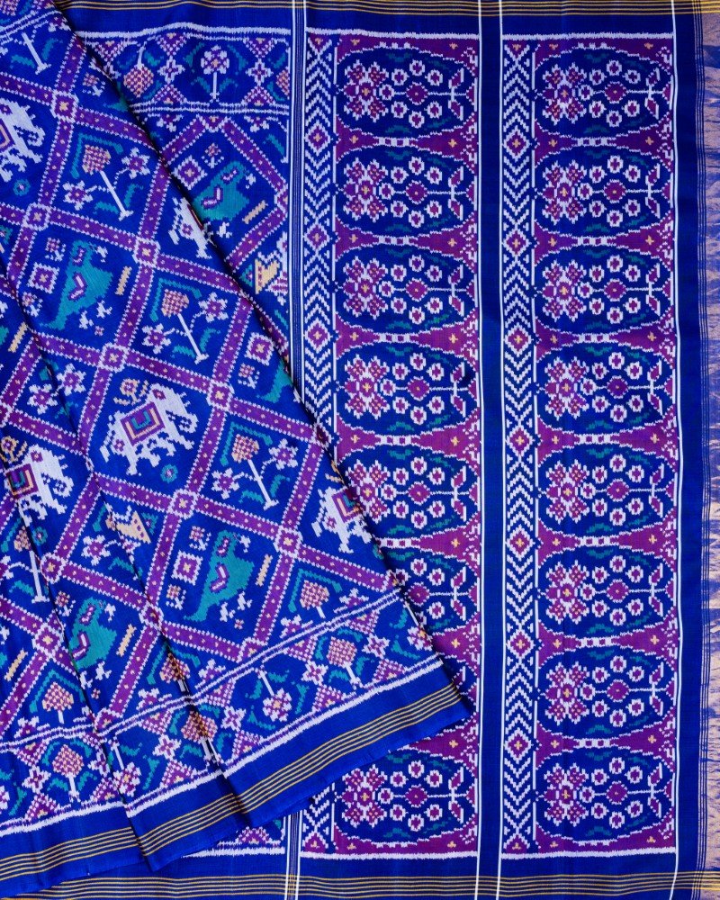 Blue Nari Kunjar Bhat Semi Ikat Patola Saree