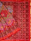 Crafted using the semi ikat technique, the saree showcases well-defined motifs with smooth colour transitions, reflecting the skilled artistry of Patola weavers. Accented with intricate multicolour detailing and finished with a traditional red and gold zari border, this saree exudes regal charm and timeless sophistication. Ideal for weddings, festive celebrations, and cultural occasions, it offers a perfect balance of heritage aesthetics and modern refinement.
