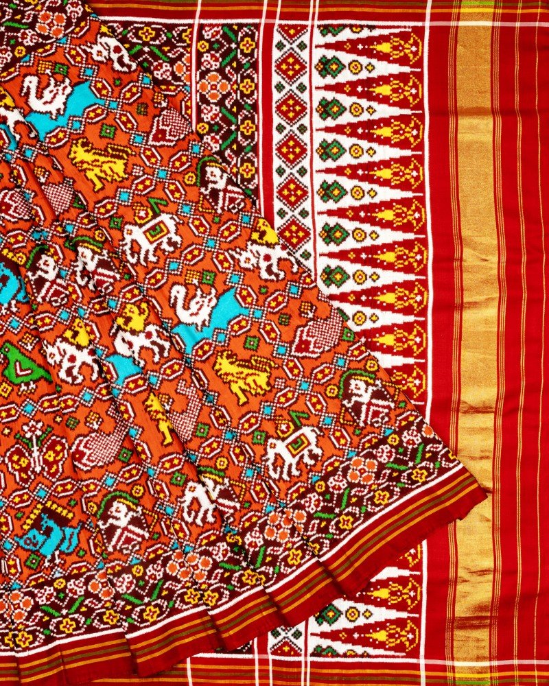 Orange Thambhli Ma Figure Patan Patola Saree