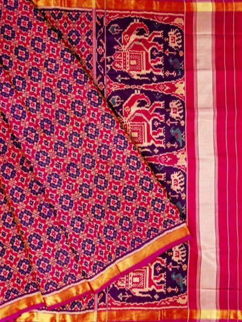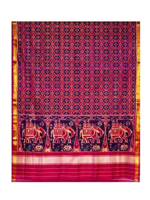 Maroon Traditional Elephant Motif Single Ikat Patola Saree